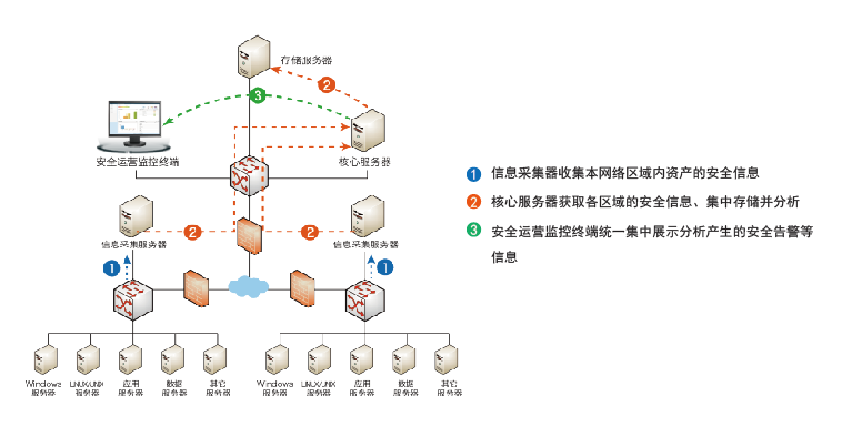 铱迅安全运营中心系统广泛应用于电信、能源、公安等大中型企事业单位。能够满足客户信息安全管理、等级保护和企业内部控制等方面的需求,可以部署在任意网络可达的区域,实现对企业资产的集中化信息采集、分析和管控。系统可支持一体式部署和分布式部署。